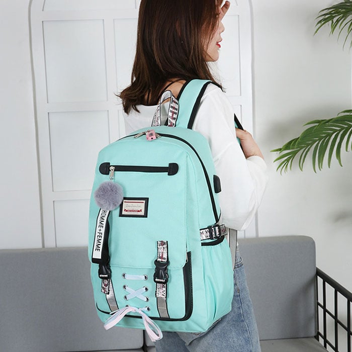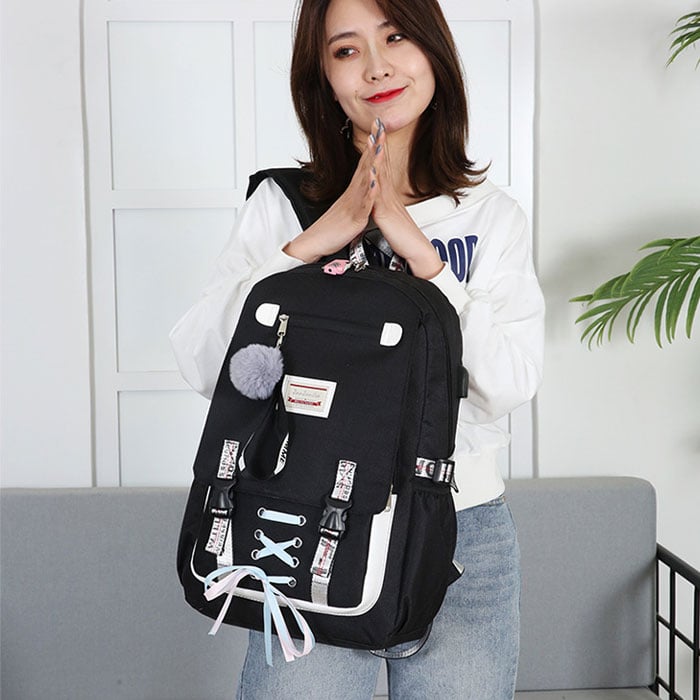 New Large USB Interface Shoelace Bundle Student Bag Sport Backpack