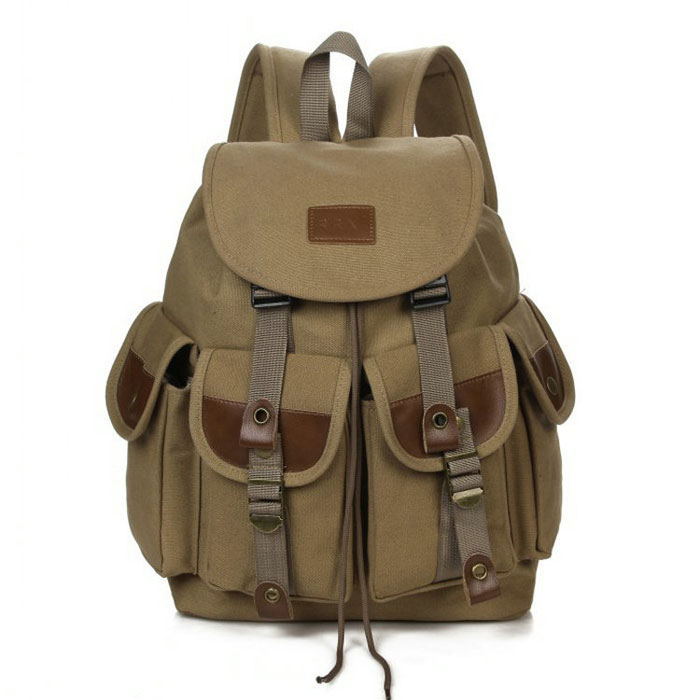 Vintage Outdoor Large Travel Rucksack Sport Backpack Men Four Pockets Canvas Backpack
