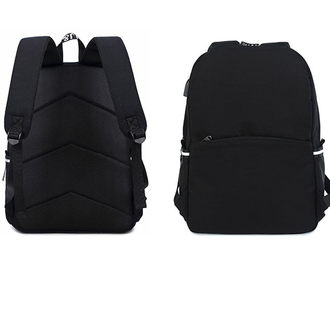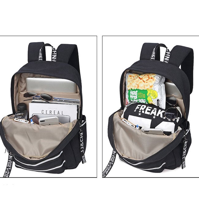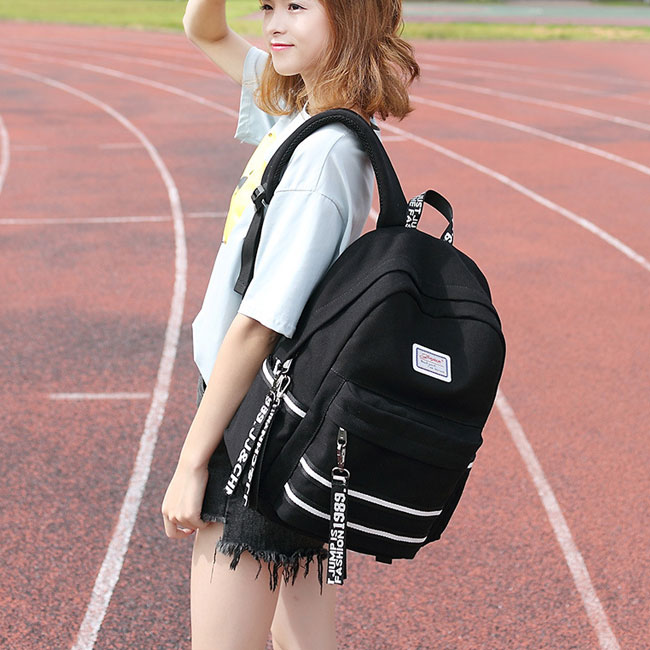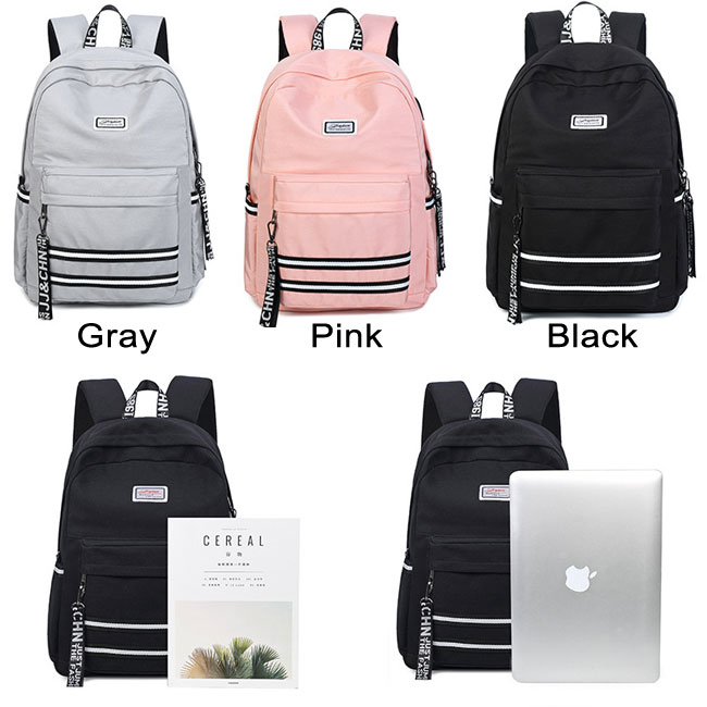 Fashion Double White Stripe Waterproof Student Bag USB Interface Large College Canvas Backpack
