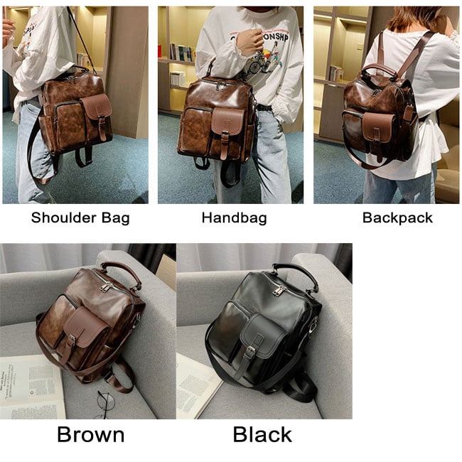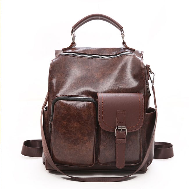 Retro Irregular Pocket Multi-function Shoulder Bag School Bag Soft Leather Backpack