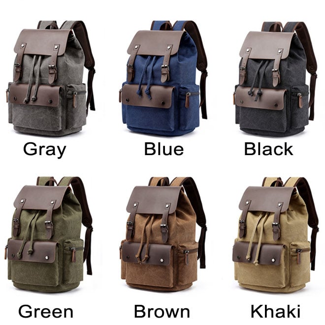 Retro Double Buckle Leather Thick Canvas Large Travel Men's Bag School Backpacks