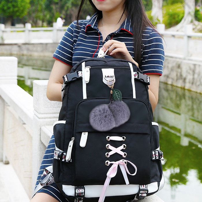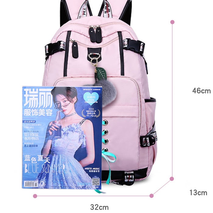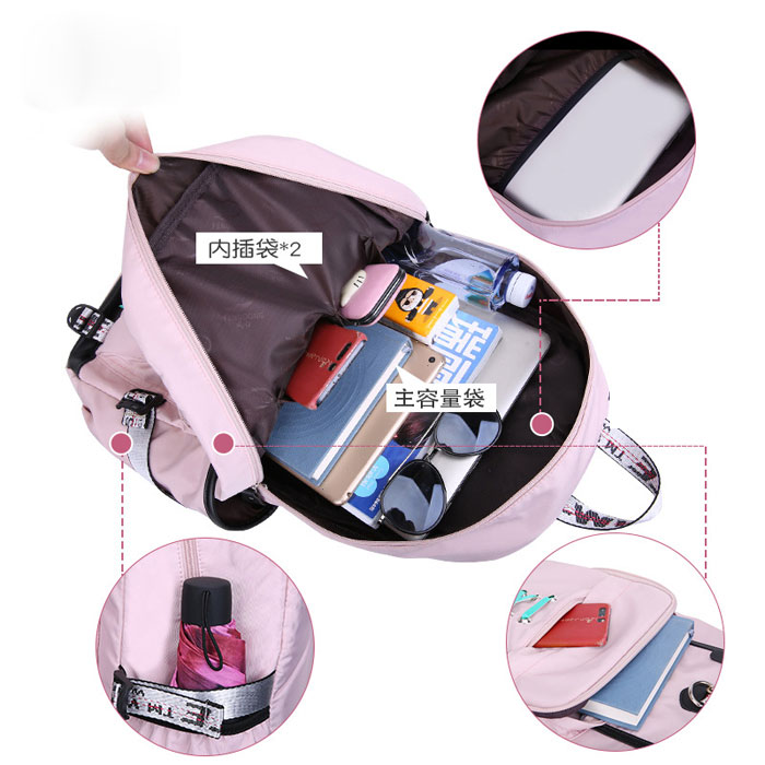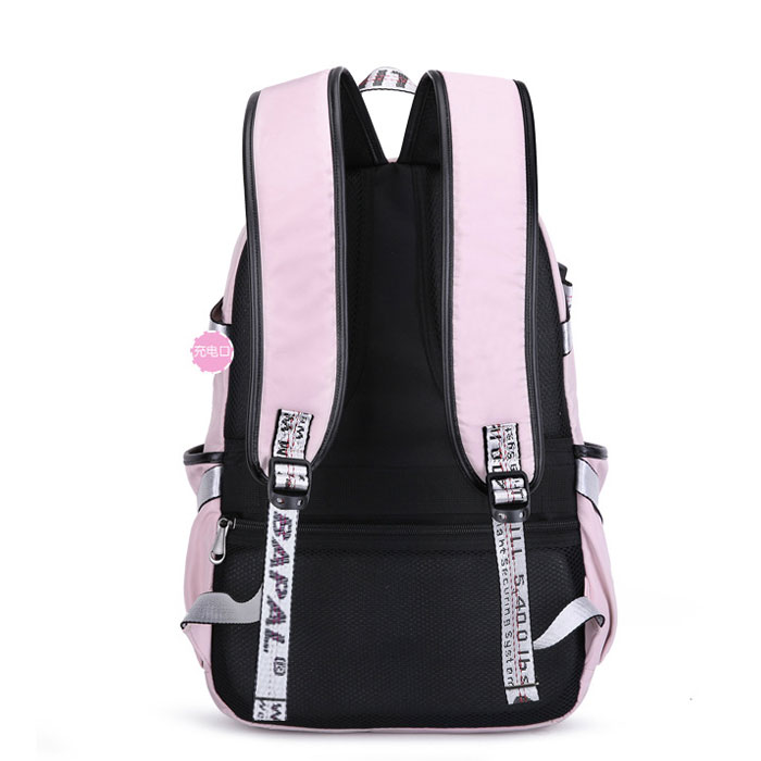 Leisure Waterproof Bandage USB Interface Nylon Student Bag Girls Junior High School Backpacks
