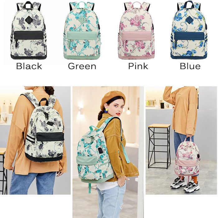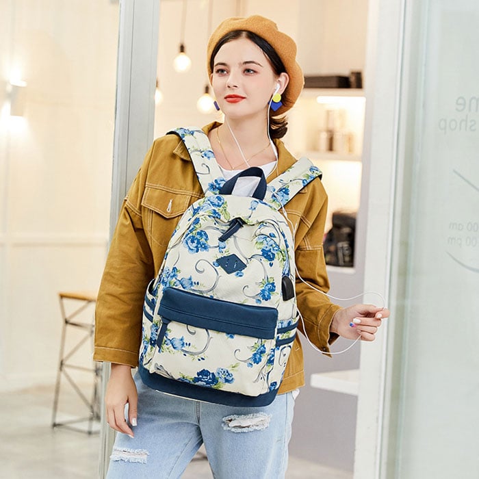 Leisure Preppy Flower Vine Rose Trunk Oxford Campus Student School Bag Backpack