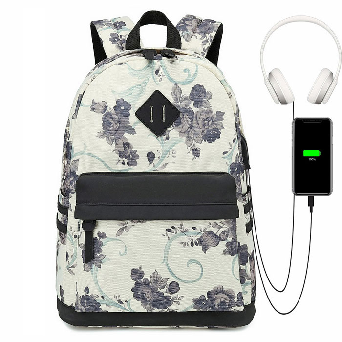 There are USB charging port and headphone port on the side of the backpack.