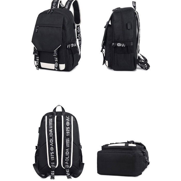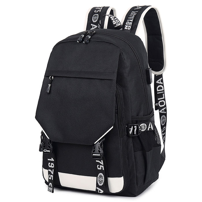 Fashion Large Capacity Outdoor Black Oxford Double Buckle Middle School Students Backpack