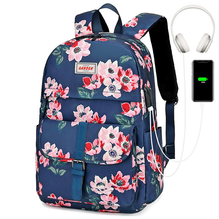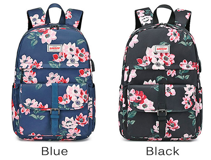 Fresh Flower Print Single Buckle Middle School Bag Large Capacity Waterproof Computer Bag Backpack