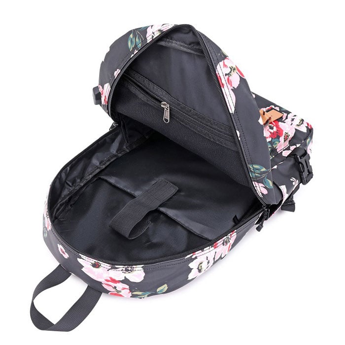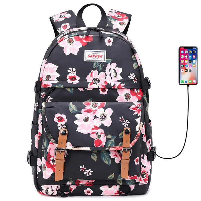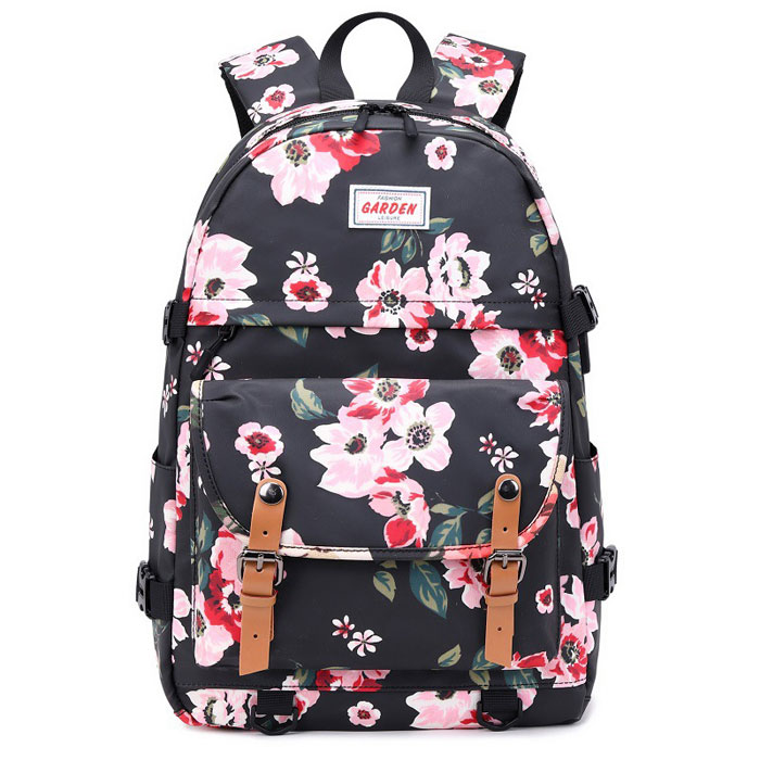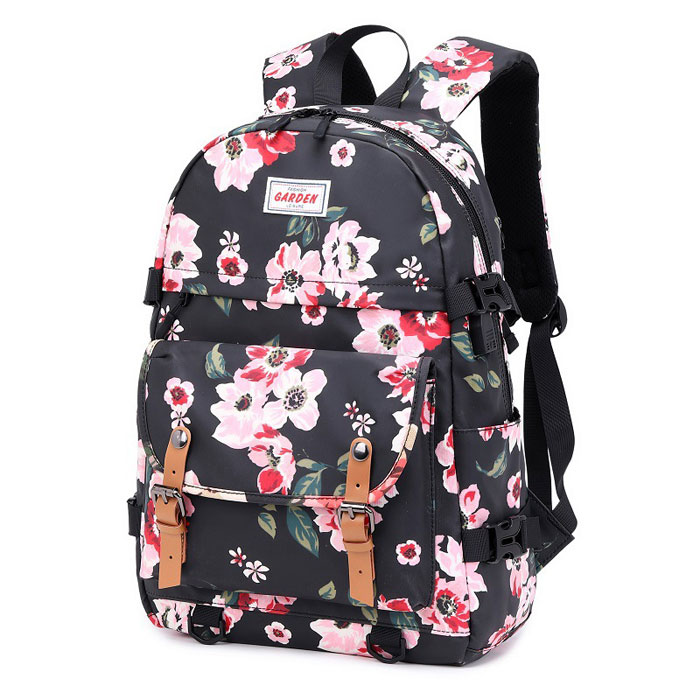 Fashion Double Buckle Flower Print Waterproof Junior School Bag Rucksack Large Capacity Student Backpack