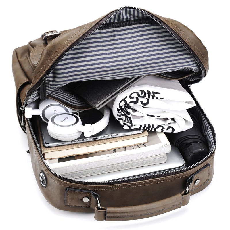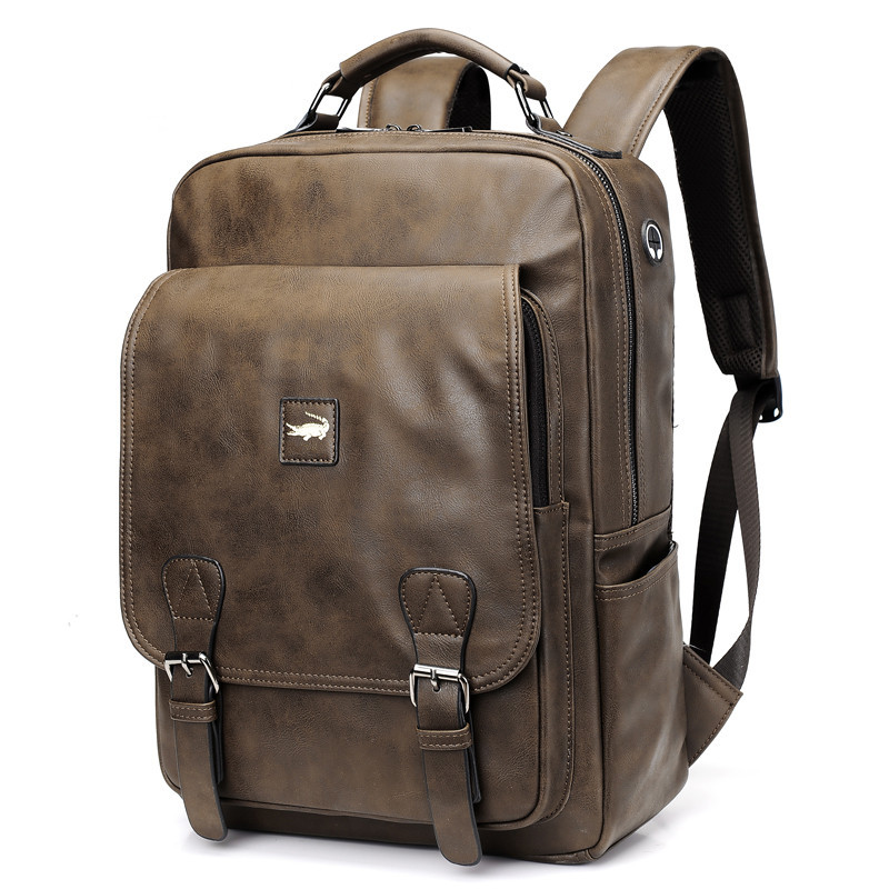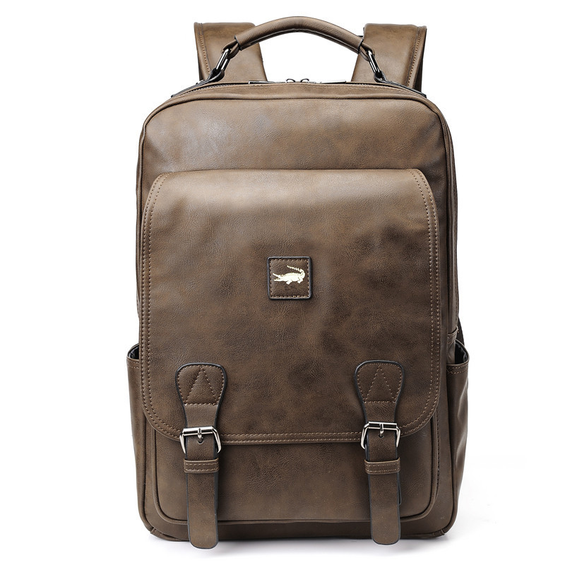 Vintage Business Double Buckle Men's School Bag Crocodile Youth Travel Large-capacity Student Backpack Laptop Backpack