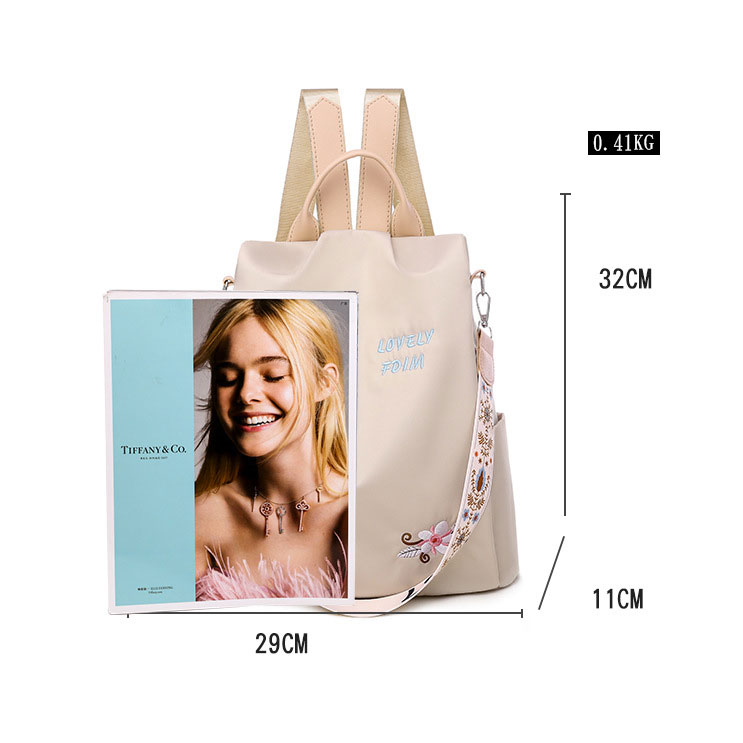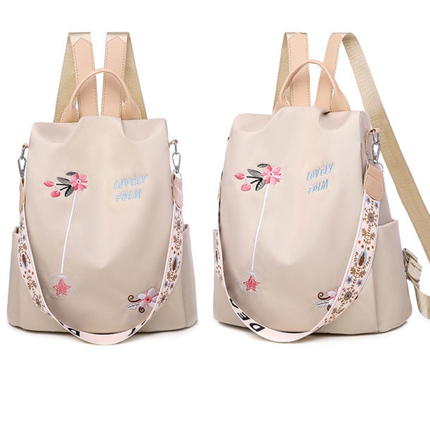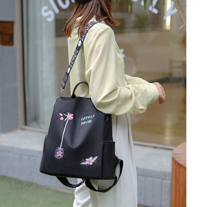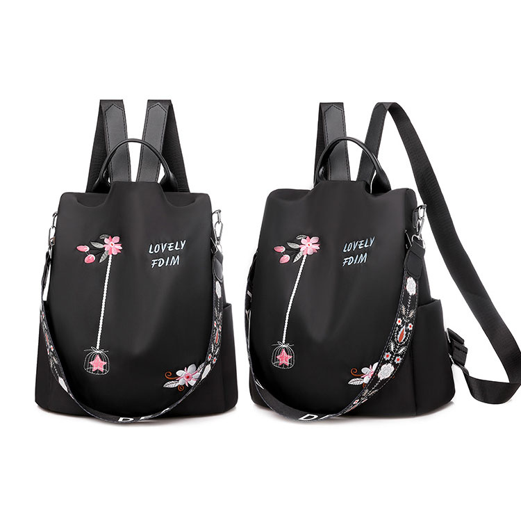 Fashion Unique Lotus Flower Embroidery Oxford Cloth Waterproof Shopping Multifunction Shoulder Bag Women's Backpack