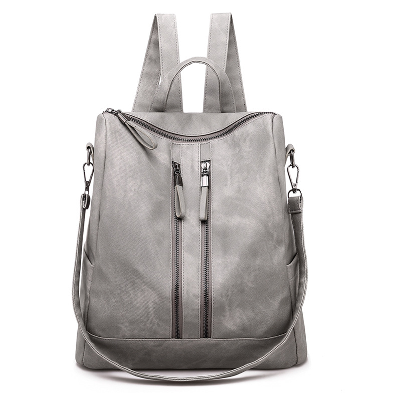 Vintage Retro Double Vertical Zipper Multipurpose PU Handbag Shoulder Bag Student Backpack