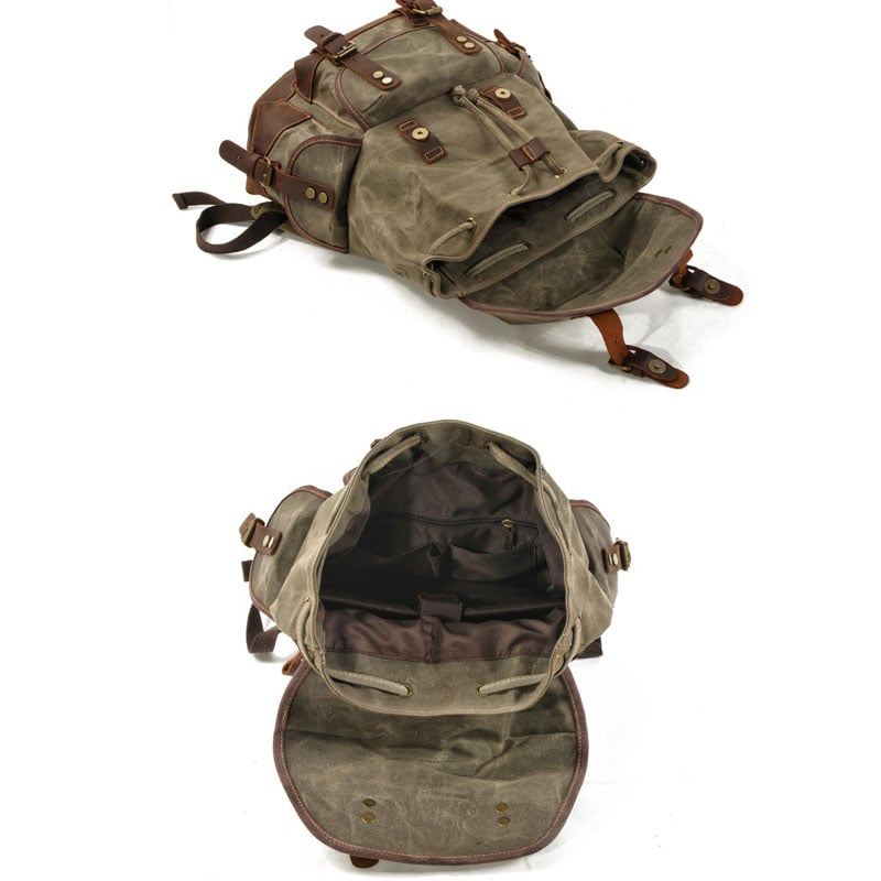 Vintage Large Size Travel Backpack Multi Pockets Canvas Rivet Stitching Leather Mountaineering Bag Camping Backpack Outdoor Backpack