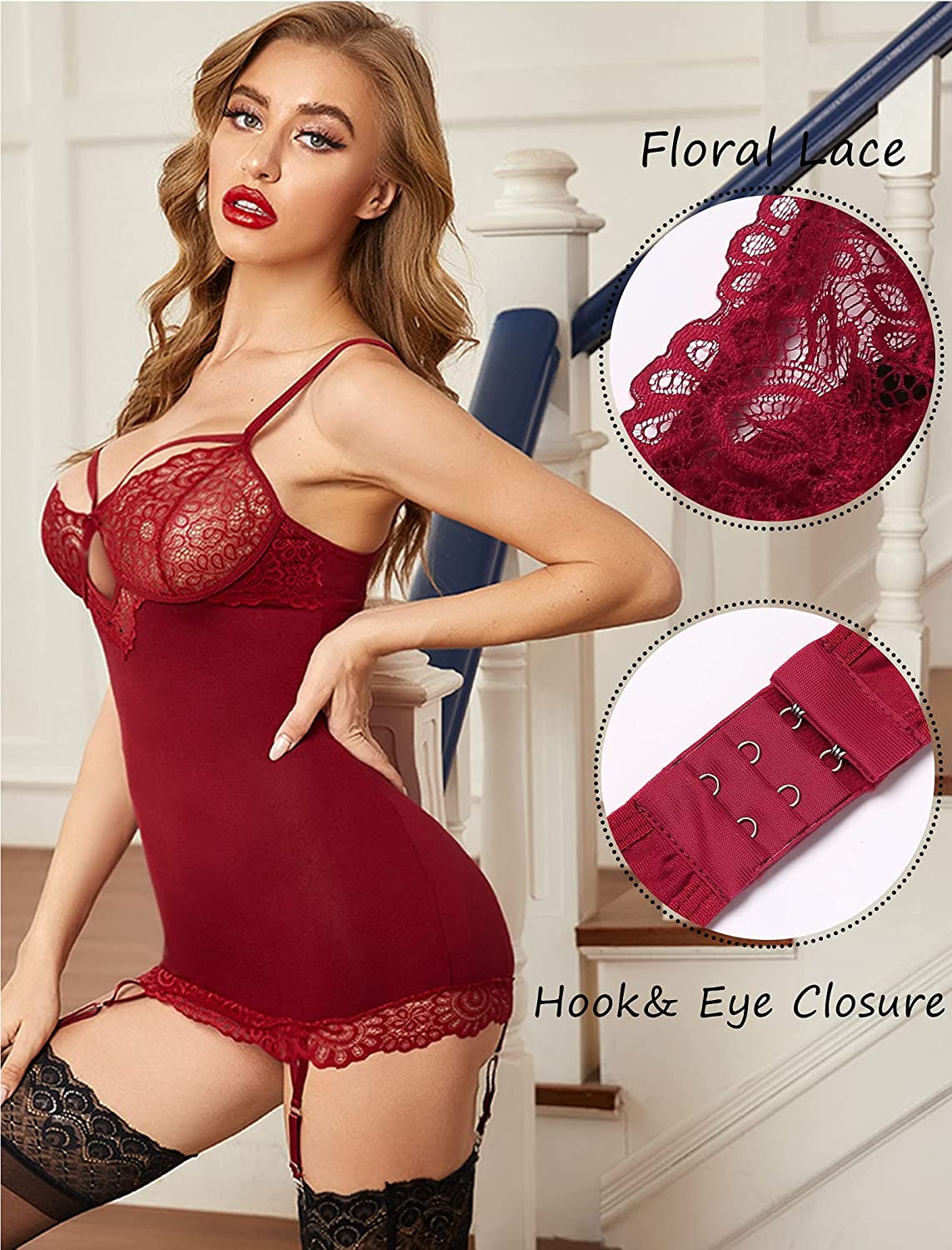 Sexy Lingerie For Lady Women's Chemise Lingerie Flower Bra Bodysuit With Garter Belt Lace Babydoll
