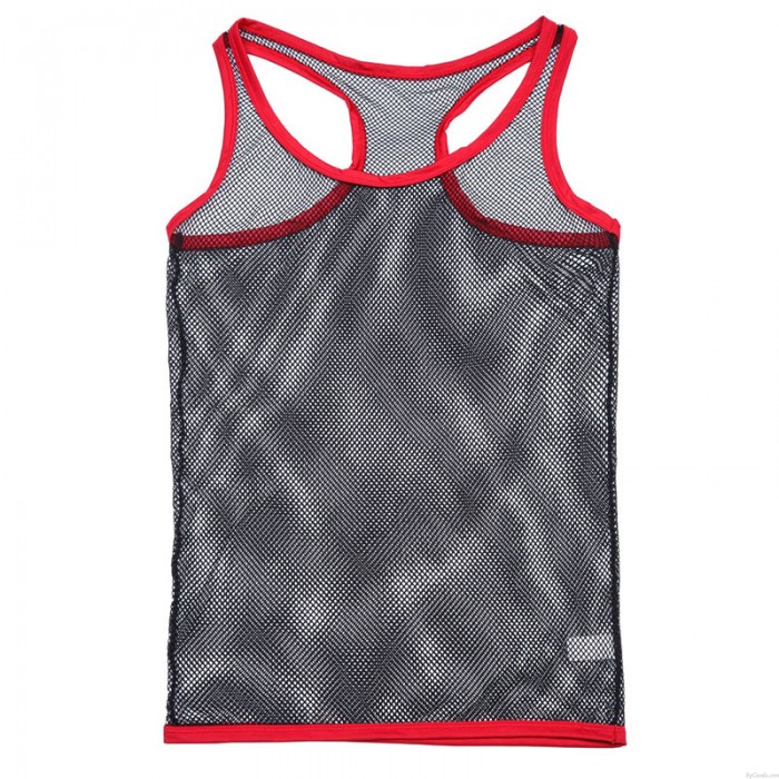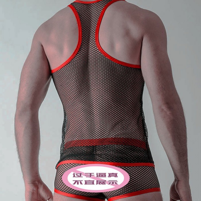 Sexy Vest Briefs 2 Piece Set Jockstraps Underwear Athletic Supporters Black Red Fishnet Mesh Men's Lingerie