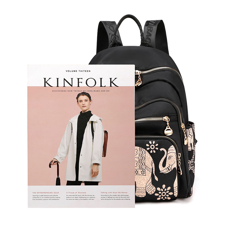 Waterproof & Anti-theft:Leisure Black Elephant Print Multi-Pockets Oxford Waterproof Student Rucksack Daypack School Backpack is made of soft durable waterproof oxford, Back zipper design with Anti-theft function, which makes you do the shopping for more comfortable and safer.
