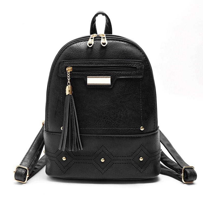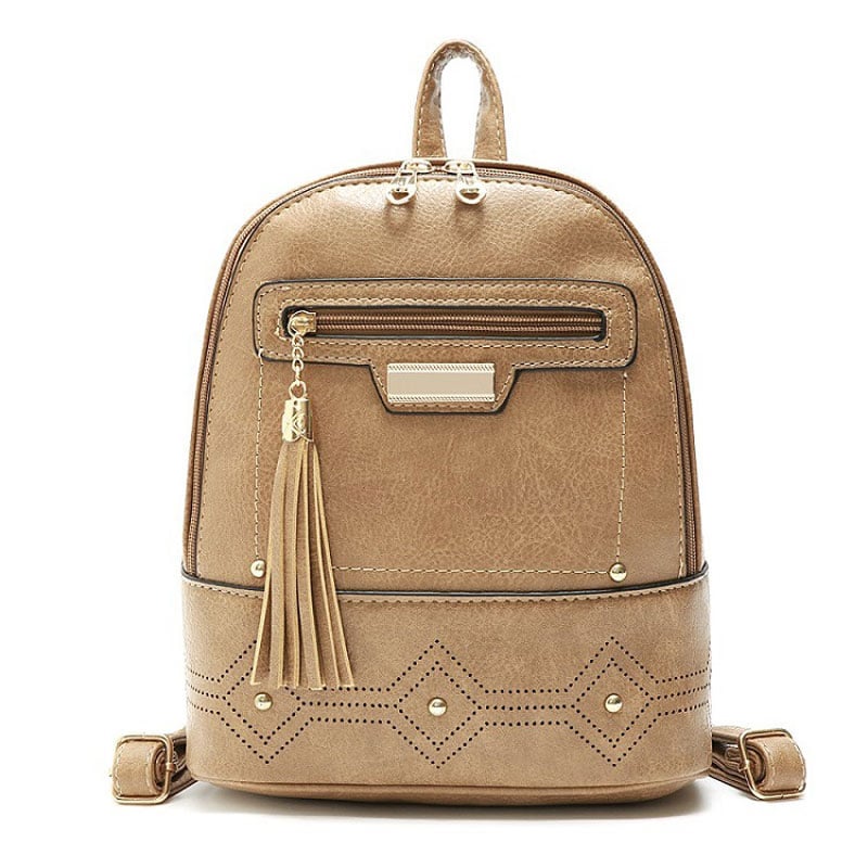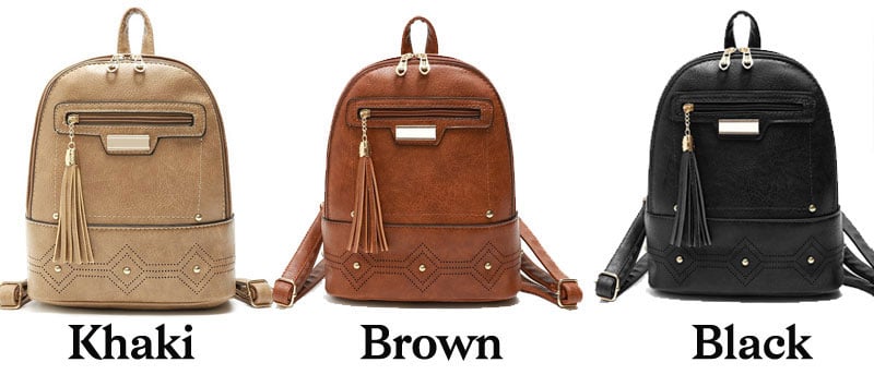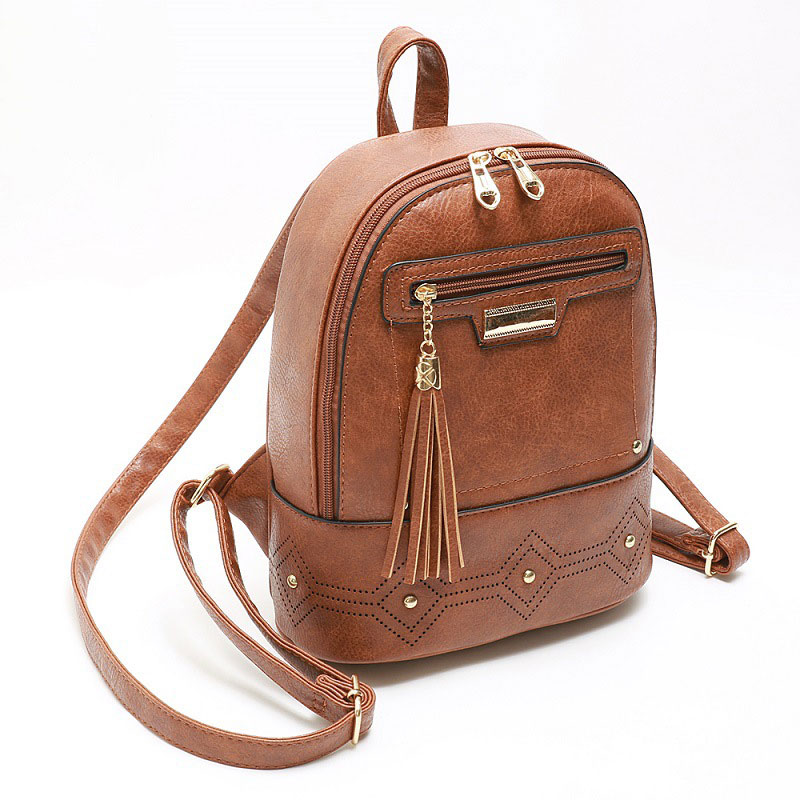 Retro Tassel Hollow School Bag Rivet Student Rucksack PU Leather Purse Women's Backpacks