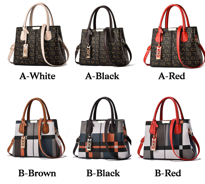 Fashion Lattice Tote Bag Purse Leather Top-handle Satchel Crossbody Bag For Ladies Shoulder Bag Grid Handbag