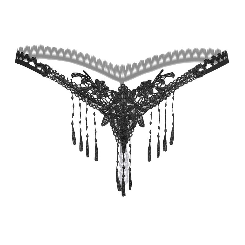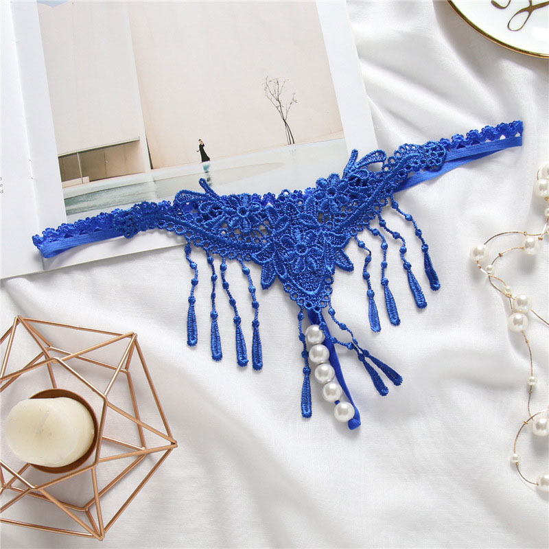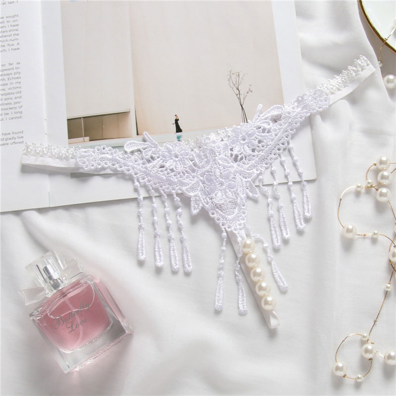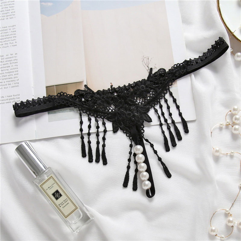 Sexy Flower Lace Tassel Pearl Crotchless Underwear Lingerie Women's Underpants G-string Thongs Briefs