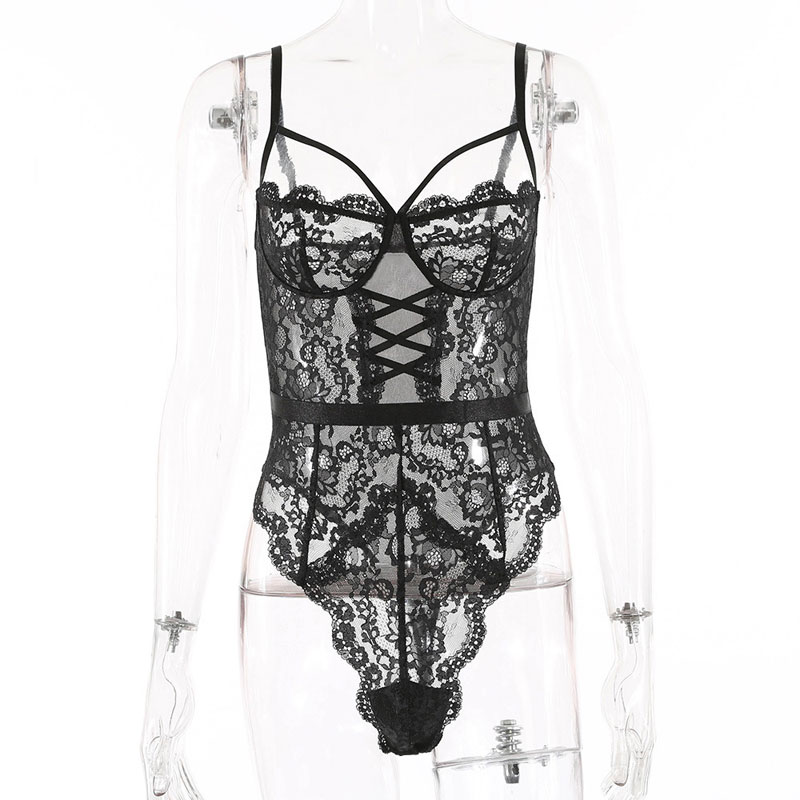 Sexy Bodysuit Lingerie For Women Underwire One-Piece Teddy Cross Slim Tights Naughty Flower Lace Valentine's Day Intimate Lingerie