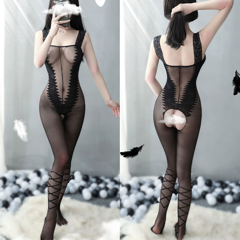 Size:One size fits most,This Crotchless Sawtooth Thin Mesh Bodystocking Lingerie's super stretchy fabric makes it fit for various body shapes. One size fits US Size 2-16. Good elasticity,generally suitable for women who usually wear S-3XL,do not rule out individual differences! Soft and stretchy enough to fits size from XS to 3XL.