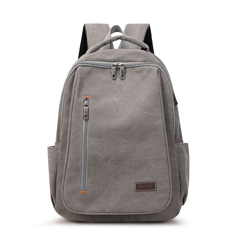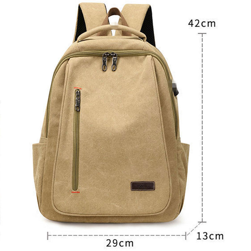 Retro Vertical Zipper Canvas Student Durable Rucksack With USB Charging Port College 15.6 Inches Laptop School Bag Backpack