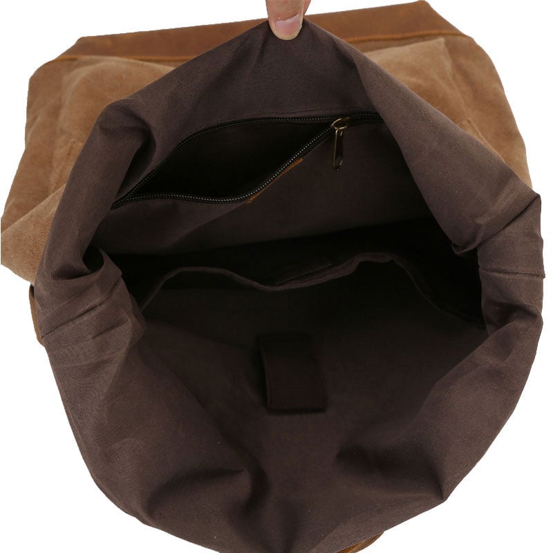 Material:Backpacks outer material is high quality Genuine Leather and thick canvas.