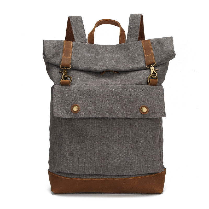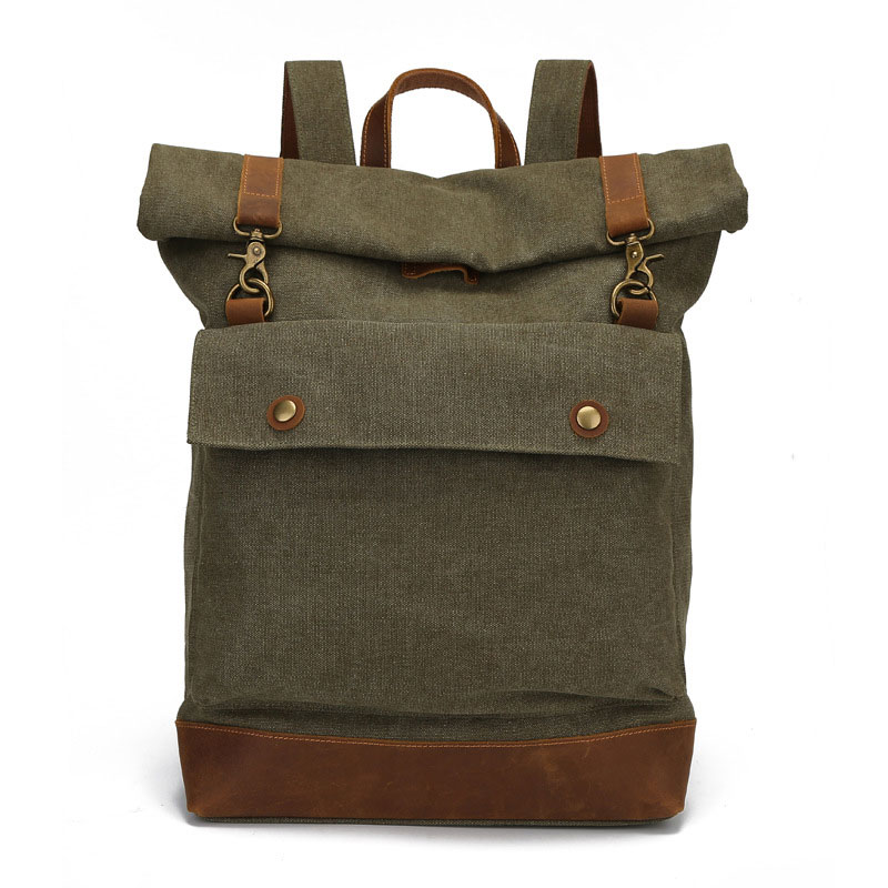 Retro Roll Cover Top Double Buckle 15.6 inches Laptop Bag Outdoor Student Canvas School Backpack Travel Rucksack