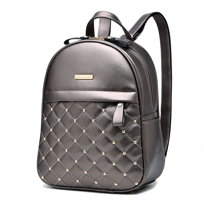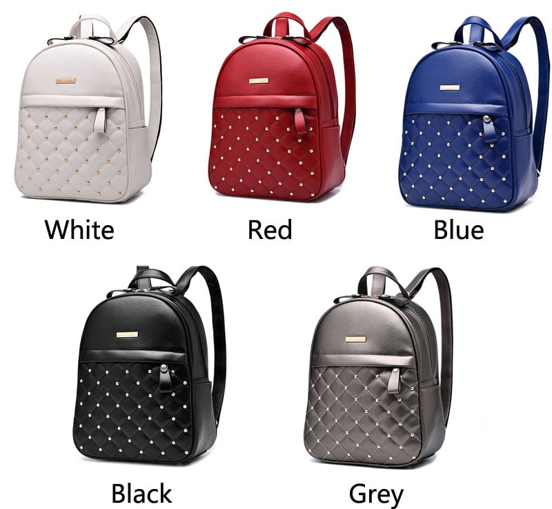 Leisure Lattice Rivet Bag Rucksack For Women PU Leather Satchel Mini Purse Daypack School Backpack