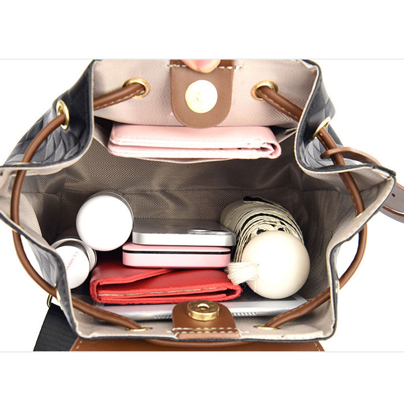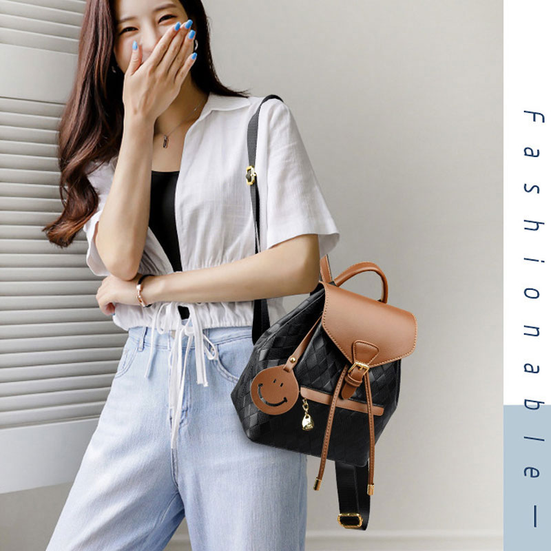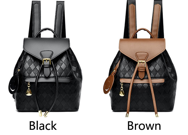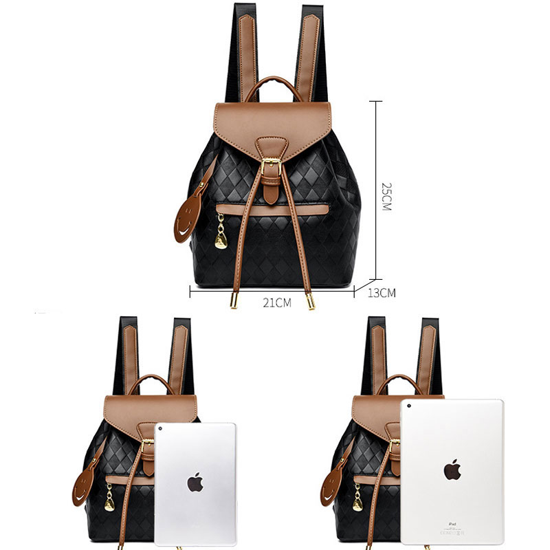 Leisure Single Buckle Lattice PU Leather Purse Daypack For Girl Student Backpack Women's Rucksack