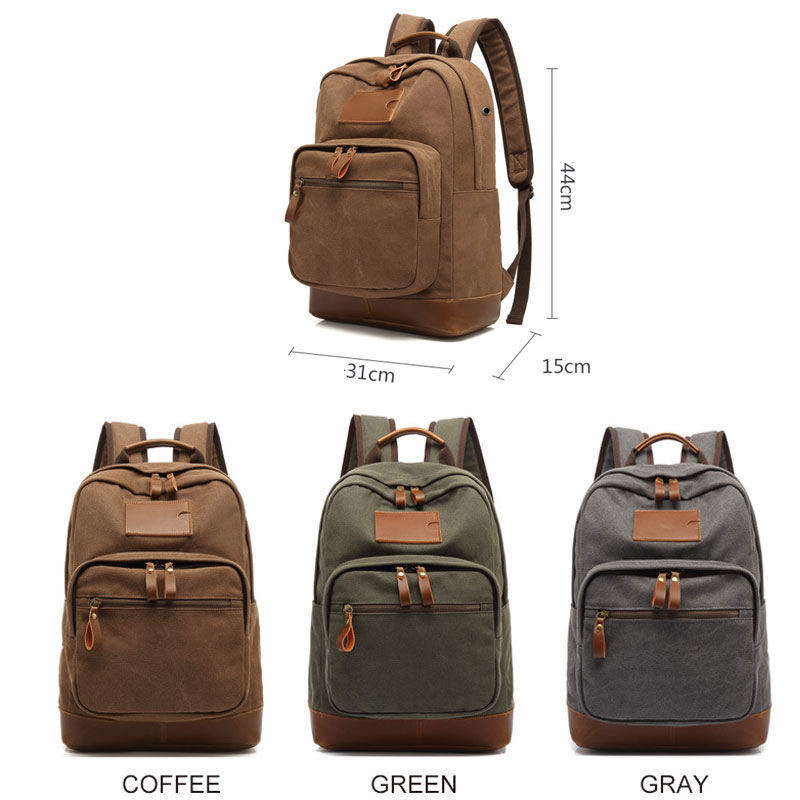 Retro Front Outside Pocket Travel Backpack With USB Charging Port Daypack School 15.6 Inches Laptop Canvas Backpack Outdoor Rucksack
