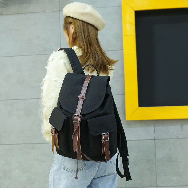 Retro Two Pockets Three Buckle Travel Rucksack Daypack School Backpack Laptop Canvas Backpack