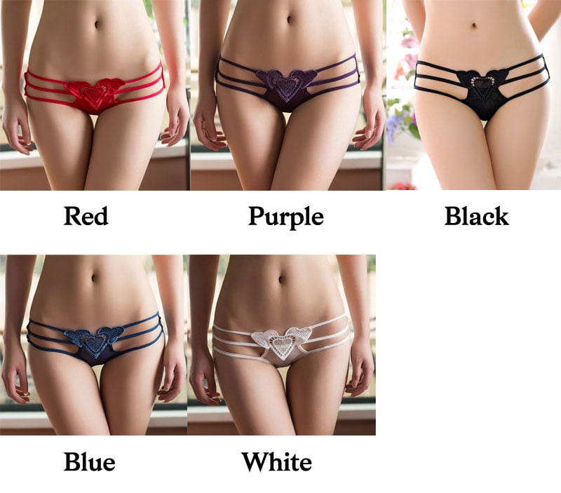 Sexy Love Heart Hollow Three Belt Underpants Briefs Low Rise Lingerie T-Back G-String Thong Lace Knickers Women's Underwear