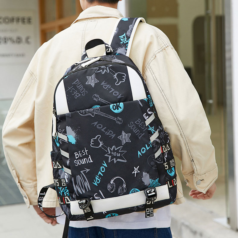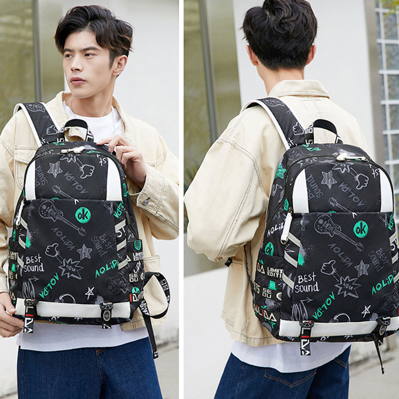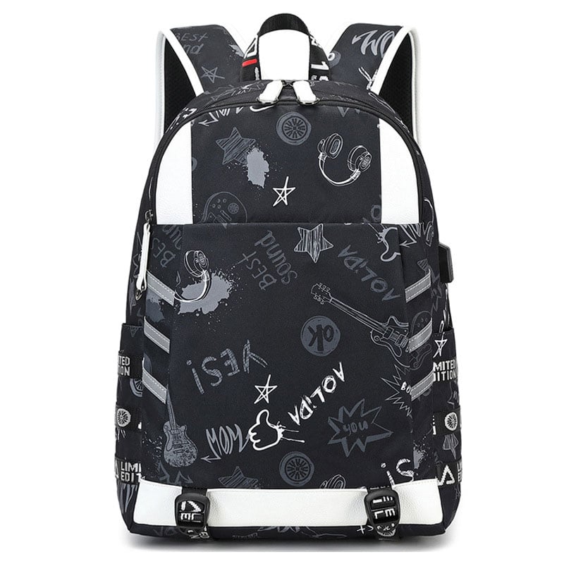 Guitar Music Printing School Backpack Laptop Backpack Large Capacity Waterproof Teens Student Backpack Student Bookbags