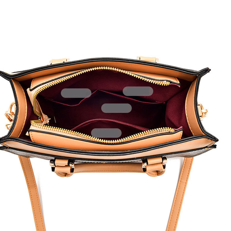 DESIGN: The Flower Lattice shoulder handbag is designed according to the printing pattern to make the handbag highlight the luxurious, generous and elegant temperament. The tote handbag includes one main compartment, one zipper side compartment, one interior slot and one interior zip pocket.