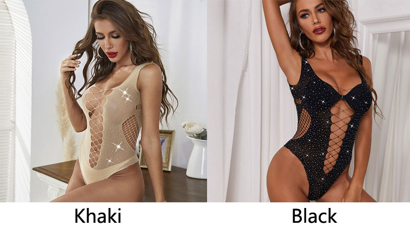Sexy Fishnet Sparkle Rhinestone Hollow Teddy Lingerie thoroughly shows off your stunning curves. Special and modern design makes you more attractive, charming, fashion and chic.Make you attractive to your lover,and spicing up your life.