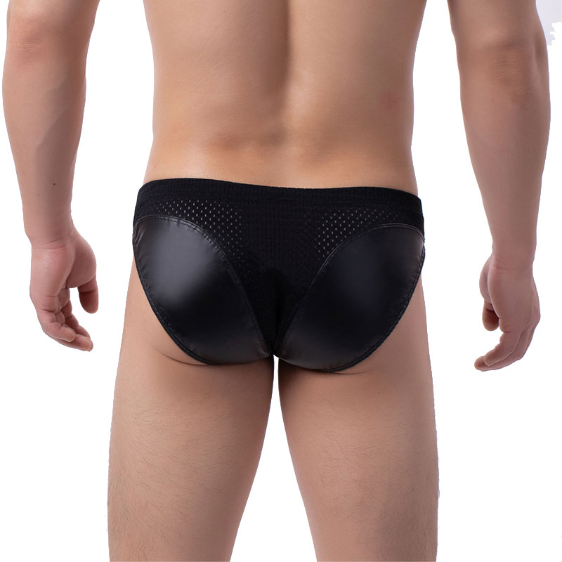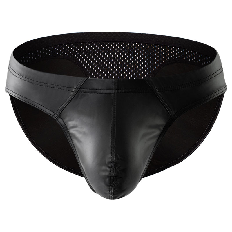 Sexy Faux Leather Thongs Briefs Mens G-string Thong Underwears Elastic Low Rise Lingerie Underpants