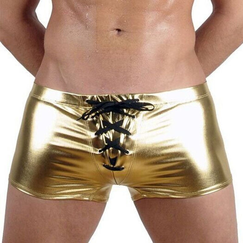 Sexy Patent Leather Bodybuilding Straps Boxers Underwear Shorts Pole Dancing Performance Clothing Knickers Men's Underpants