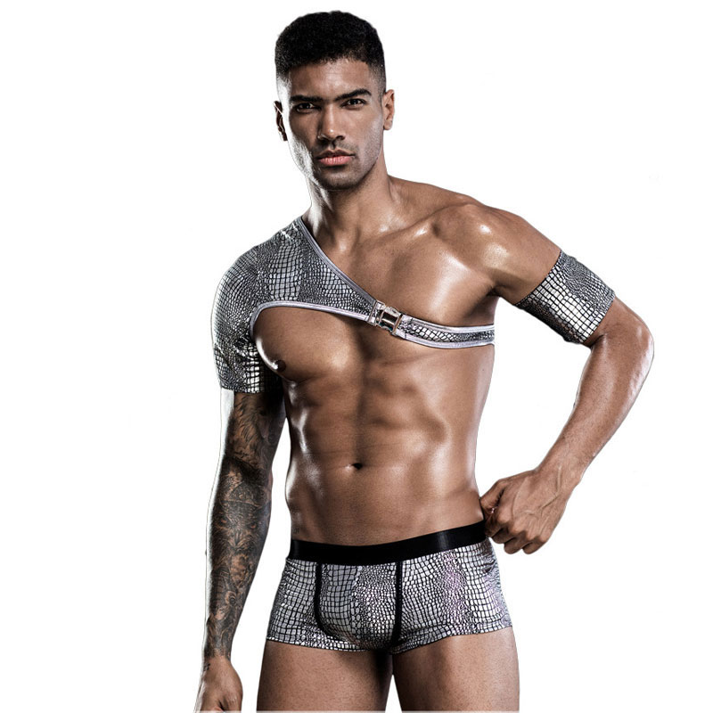 Sexy Nightclub Bar Performance For Men Snakeskin Uniform Tops Boxers Panty 2 Piece Set Athletic Supporte Clubwear Lingerie