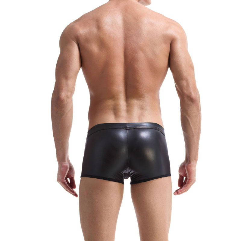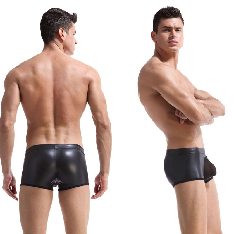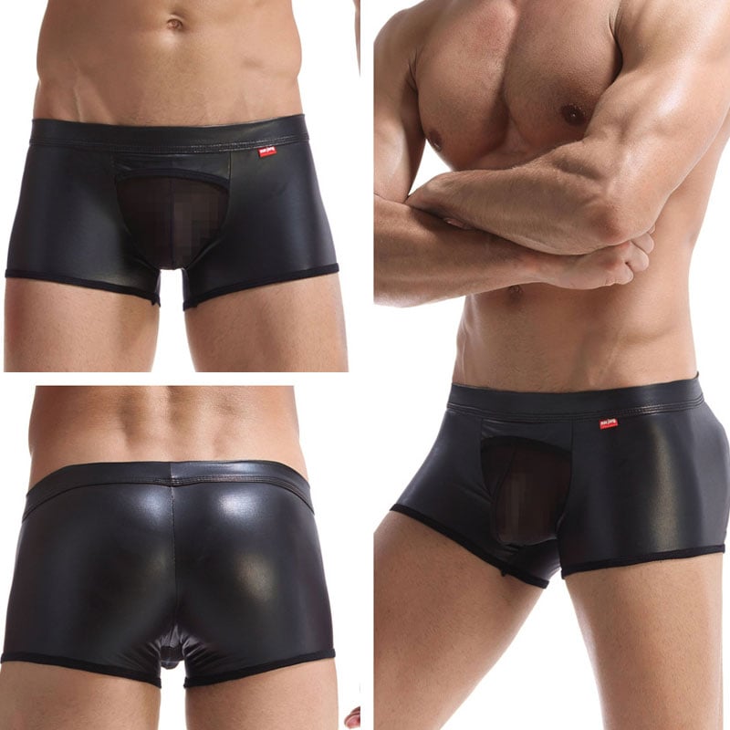 Sexy See Through Mesh Faux Leather Boxer Briefs Underwear Panties Men's Lingerie Panty Underpants