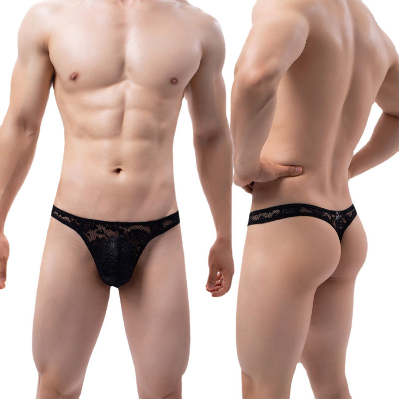 Sexy Hollow Flower Lace G-String Thong T-Back Briefs Panty Underwear Panties Men's Lingerie
