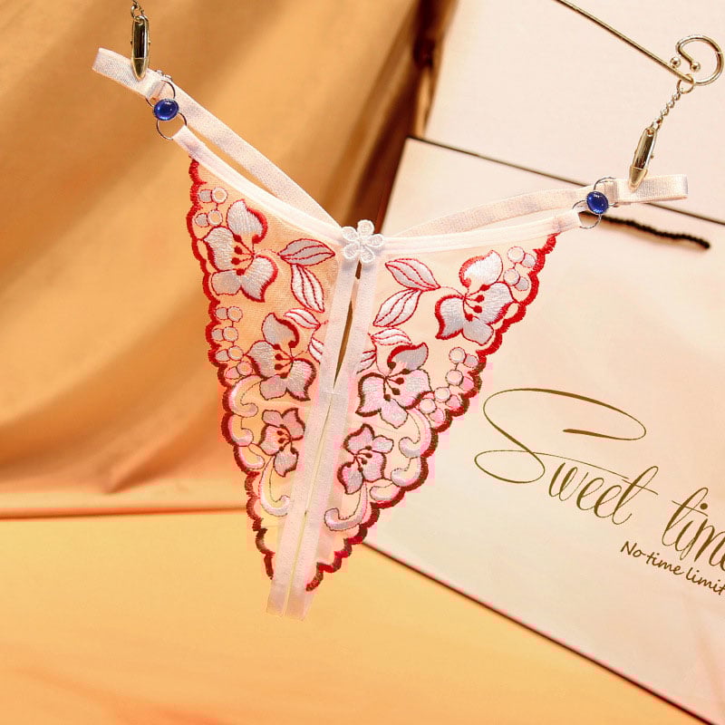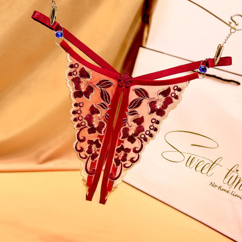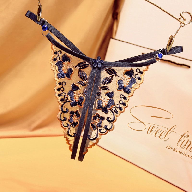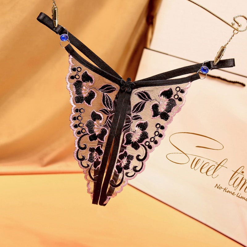 Sexy Crotchless Flower Embroidery Transparent Hollow G-String Thong T-Back Underwear Briefs Women's Lingerie Underpants