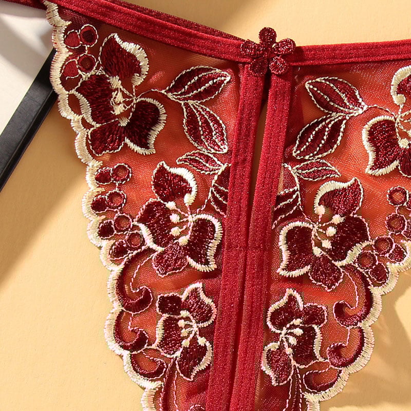 Fashion Element: Crotchless,Flower Embroidery,Transparent,Hollow