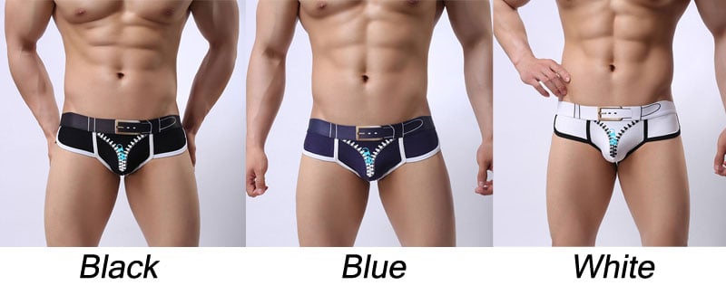Sexy Zipper Belts Print Cotton Thong Panties G-String Lingerie For Men Briefs Underwears