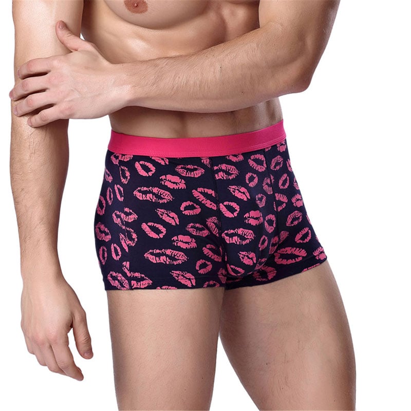 Sexy Lips Print Mesh Plus Size Breathable Underwear Men's Underpants Thong Lingerie Boxers Briefs