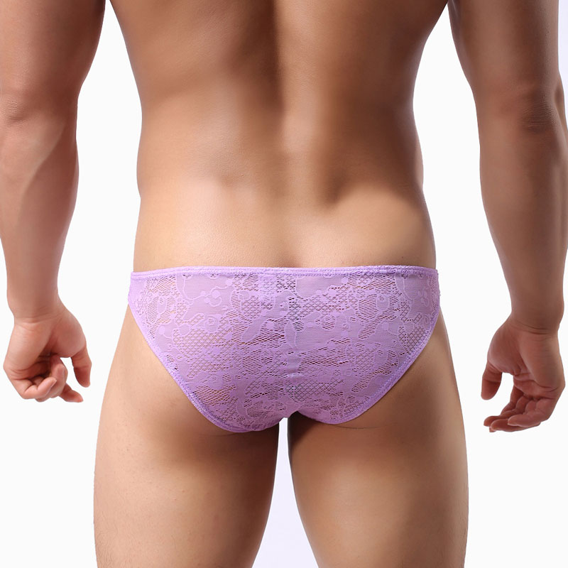 Sexy Mesh Flower Lace Thong Lingerie Low Rise Underwear Men's Briefs Breathable Underpants