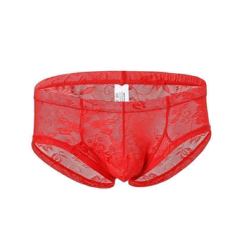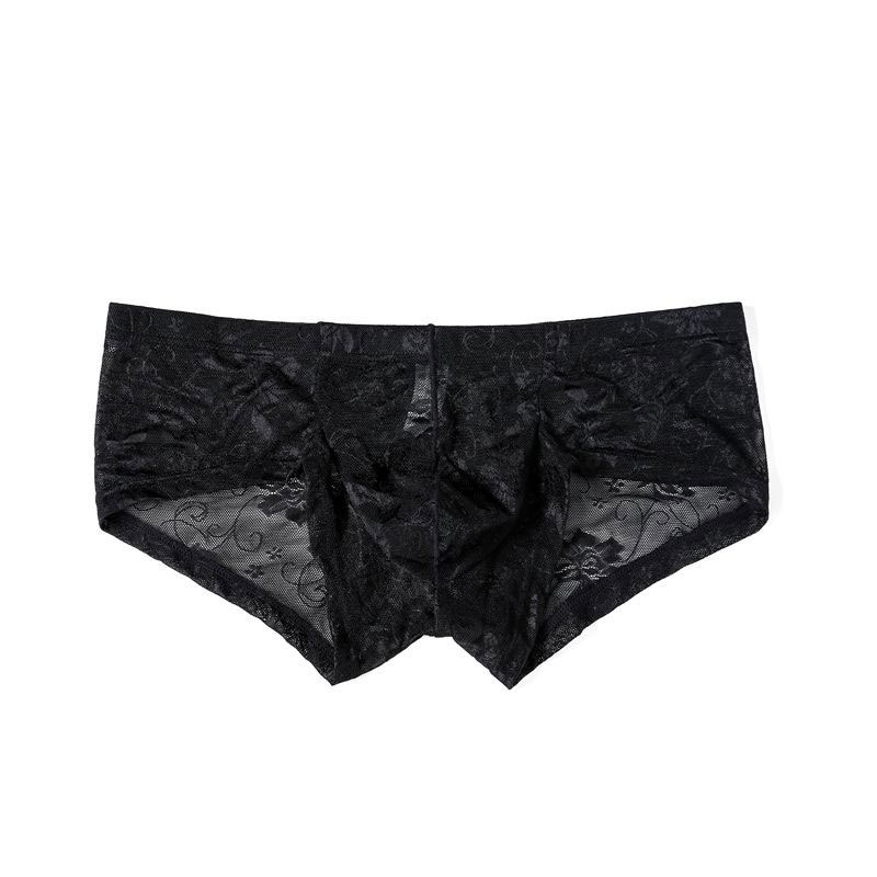 Sexy Sheer Mesh Flower Lace Thong Lingerie For Men Low Rise Breathable Underpants Underwear Boxer Briefs