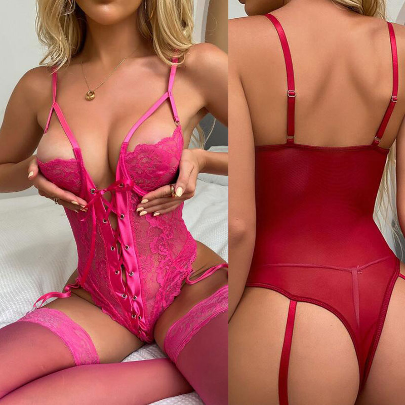 Sexy Lace Corset Bandage Garter Belt Teddy One Piece Strap Bodysuit Women's Lingerie