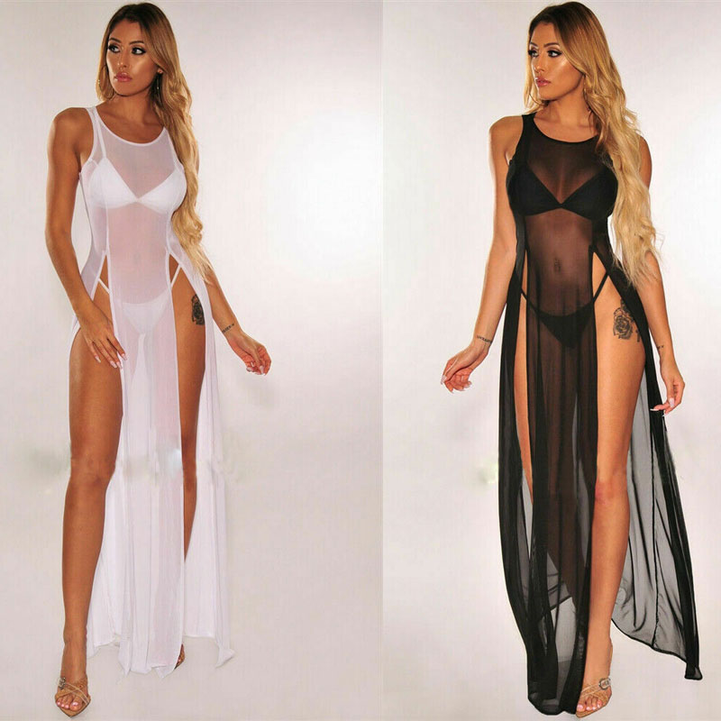 Sexy Sleepwear See Through Mesh Bridal Lace Gown Long Maxi Dress Side Slit Gown Nightdress Lingerie Robe
