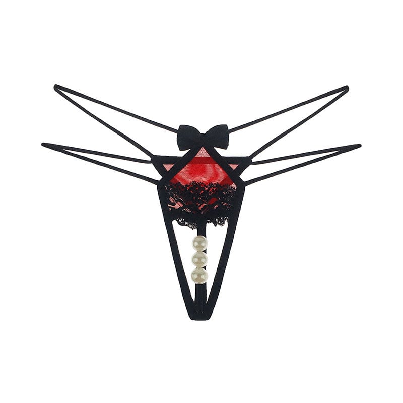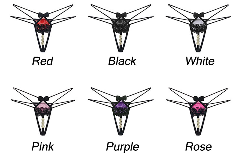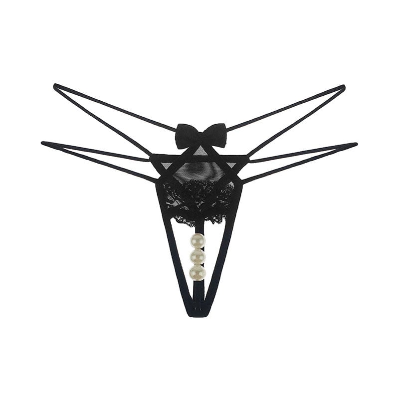 Sexy Pearl Massage Bowknot Lace Thong Women's Lingerie Briefs Panties T Back Underwear