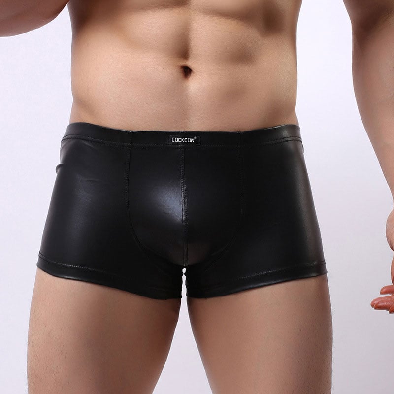Sexy Shiny Faux Leather Boxer Briefs Men's Thong Lingerie Mesh T-back Jockstraps Underwear Underpants