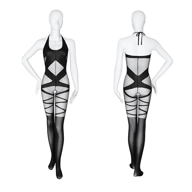 Sexy Transparent Crotchless Tights Cross Lingerie Teddy Romper Jumpsuit Underwear Bandage Bodystocking Bodysuit